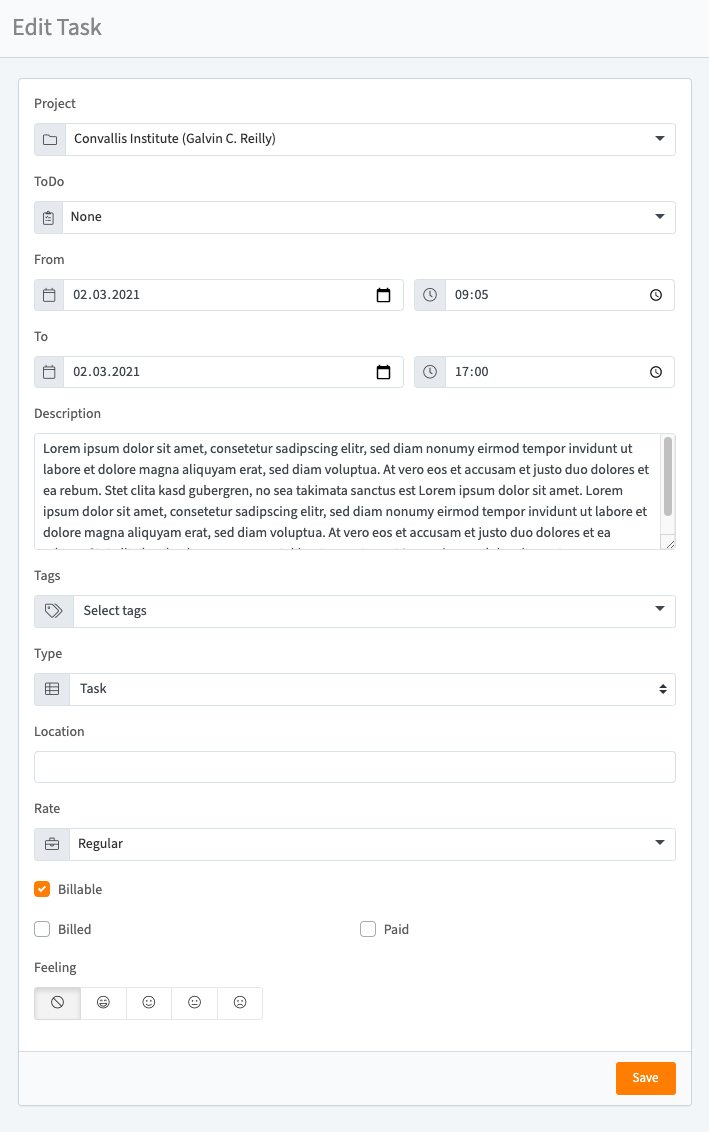 - Automatic billing (uses project rate)